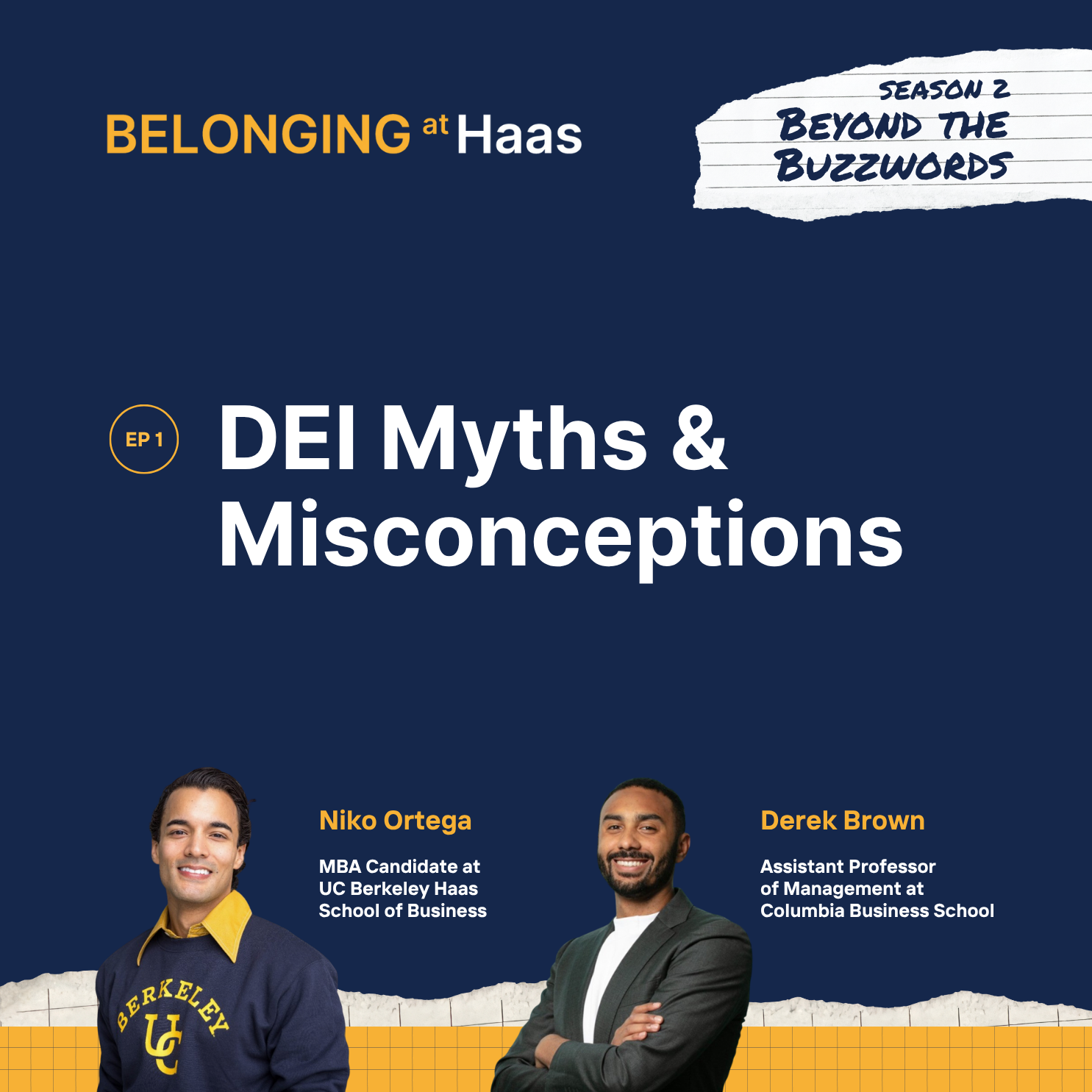 In this episode of Belonging@Haas, host Efe Edevbie interviews Niko Ortega, an MBA candidate at UC Berkeley Haas School of Business, about common misconceptions about Diversity, Equity, and Inclusion (DEI) and then they gain insight from Derek Brown, an assistant professor of management at Columbia Business School, about the evolving landscape of DEI.